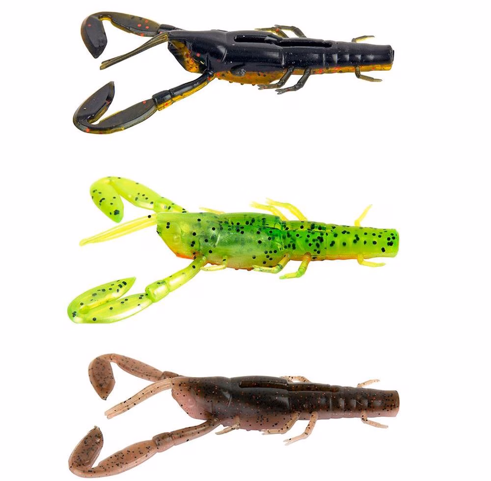Fox Rage Ultra UV Critters Imitazione di gamberi molto realistica con appendici vibranti e chele estremamente mobili. Disponibili in due misure rispettivamente da 7 e 9 cm, il Fox Rage Ultra UV Critters è adatto alla pesca di predatori come grandi persici reali, lucioperca (sandra) e black bass. Crayfish shape softbait potenziata con scent al gambero e colorazione UV ed apposita tasca per inserire l'amo in modo del tutto weedless Consigliato per inneschi drop shot, shaky head e texas con amo offset.