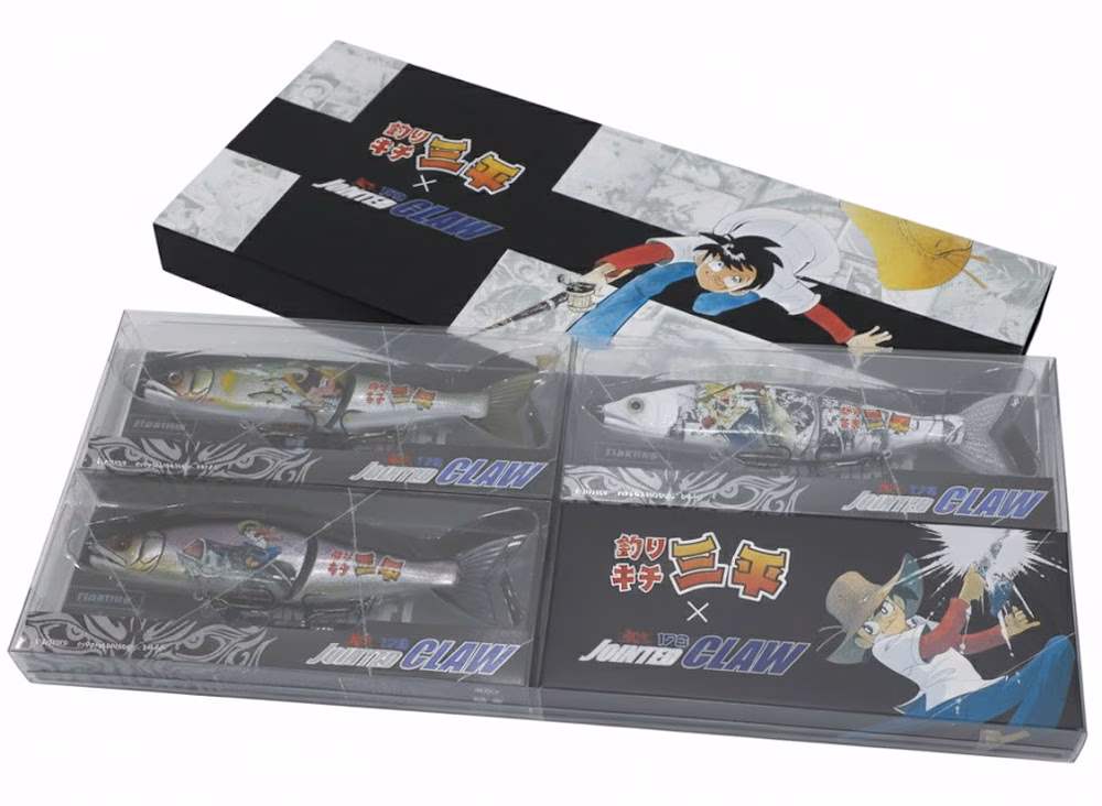 Gan Craft Jointed Claw Box Sampei Limited Edition. Esclusiva e particolare selezione di ben 3 swimbait Gan Craft pensate appositamente per commemorare la scomparsa di Takao Yaguchi. 3 Gan Craft Jointed Claw in colorazione speciale con i disegni originali di Sampei. Il box viene venduto con una confezione caratteristica da esposizione e all'interno, oltre alle tre swimbait, sono presenti anche i supporti da esposizione orginali. Gan Craft Jointed Claw 178 - BOX SAMPEI LIMITED EDITION. Esclusiva e particolare selezione di Swimbait Gan Craft pensate appositamente per commemorare la scomparsa di Takao Yaguchi.