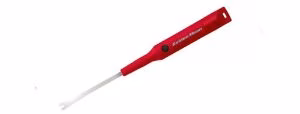 Golden Mean GM Hook Out. Il rivoluzionario slamatore Hook Out lanciato dalla nipponica Golden Mean è un rimuovi amo dotato di luce Led attivabile tramite interruttore ON/OFF; ciò ci consentirà così di individuare prontamente il posizionamento di amo o ancoretta all'interno della bocca della nostra preda, anche nelle battute di pesca notturne. Grazie alla specifica punta a "Y" potremo operare agevolmente nella zona interessata senza ferire il pesce. Hook Out è dotato di attacco per poter inserire un'occhiello o direttamente un cordino elastico per tenerlo agganciato alla cintura o al giubbino, lungo 16 cm permette di arrivare nelle bocche più profonde.