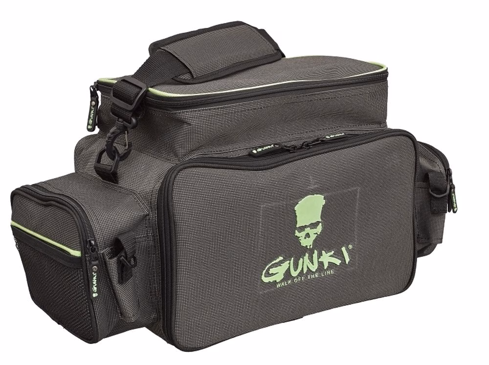 Gunki Iron-T Box Bag Front-Pike Pro. Borsa da luccio con tracolla, il cui scomparto principale è accessibile attraverso un’apertura frontale per un rapido accesso a due grandi scatole ‘Pike addict’ (35.5x22x8cm). Lo scomparto superiore contiene anche una scatola di plastica (27,5x18x4,5 cm), molto comoda per l’organizzazione della tua attrezzatura. Una borsa molto funzionale, proposta in un formato ‘Pike pro’ per lo stoccaggio di grandi esche. Numerose tasche porta oggetti facilmente accessibili (antiscivolo, rete, trasparente, clip). La borsa da pike fishing perfetta per ogni pescatore di lucci.
