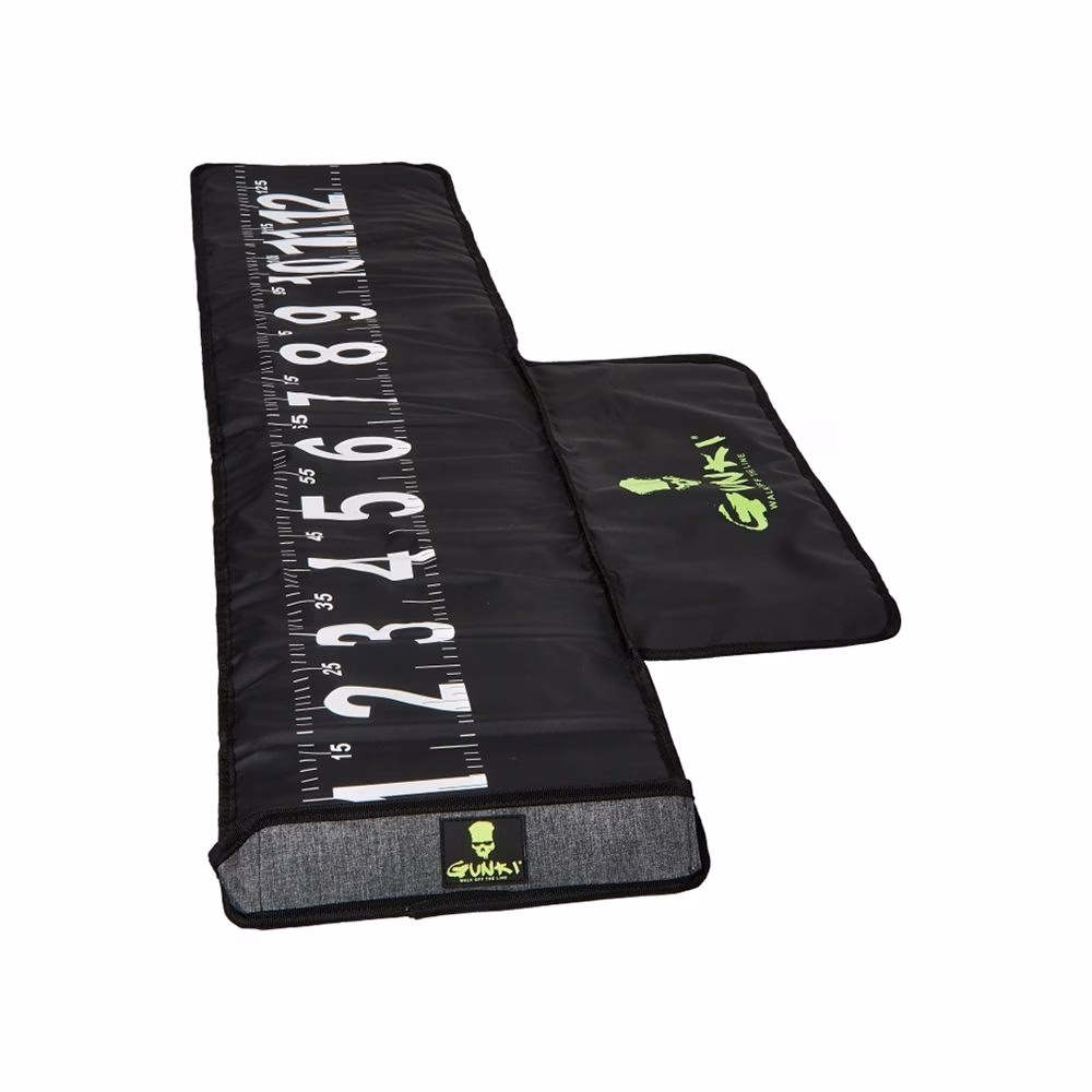Gunki Specimen Mat Power Game. Il Specimen Mat Power Game è un materassino per tutelare la salute del pesce durante le operazioni di slamatura. E' realizzato con superficie lavabile, buona imbottitura e ha un metro che permette di misurare il pesce. Dotati di pratica borsa per il trasporto, chiusura in velcro che ne riduce l’ingombro e di anelli che permettono di attaccarli allo zaino.