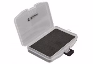 Questa scatola da pesca è consigliata per esche quali rotanti, ondulanti, piccole hardbaits, streamer, hair jig, jigheads. Piccola e pratica, associa capacità di carico ad un ingombro molto limitato. Chiusura con click di sicurezza anti apertura accidentale, realizzata in materiale plastico trasparente che permette la facile e veloce individuazione del materiale all'interno. Le esche si bloccano facilmente fissando gli ami alla particolare schiuma morbida.