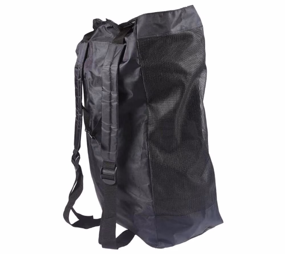JMC Sac Escale. Zaino in rete per un facile trasporto dei belly boat e altri accessori. JMC Sac Escale è realizzato di materiale tecnico, dotato anche di una tasca per trasportare le pinne. Consente di trasportare facilmente belly boat, pinne, waders ed altri accessori fino al luogo di pesca. Grazie alla struttura a rete favorisce l'asciugatura del float tube ed evita la formazione di muffe.