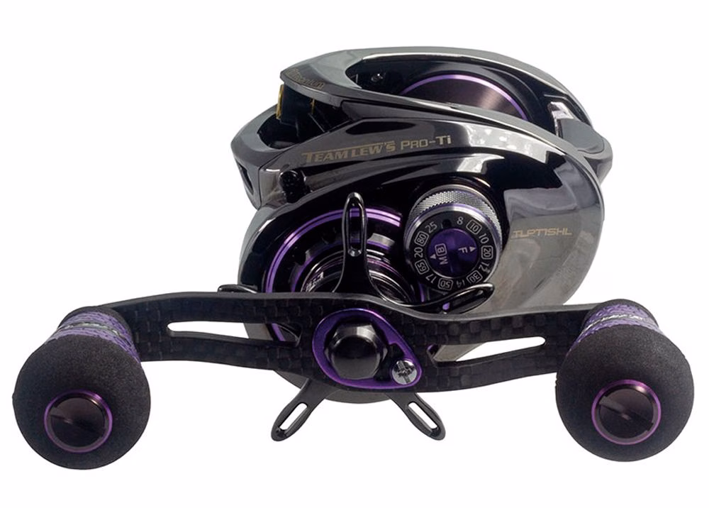 Lew's Team Lew's Pro-Ti è un mulinello da baitcasting con una robusta struttura in alluminio monoblocco SLP e piastre laterali con finitura esterna ottenuta tramite deposito di titanio, Duralluminio Titanio aeronautico a doppia anodizzazione, forato, con bobina smussata a U da 32 mm. Il Pro-Ti presenta ingranaggi Speed Gears® in robusta lega di alluminio anodizzato, ottenuti tramite macchine a controllo numerico Hamai, sistema di precisione con 11 cuscinetti a sfera in acciaio inossidabile a doppia schermatura, che include cuscinetti speciali giapponesi ad alta velocità per la bobina e un cuscinetto per la frizione unidirezionale Zero Reverse®, sistema di frenatura centifuga QuietCast®Adjustable Central Braking (ACB) regolabile esternamente, caratterizzato da 6 pin e 27 posizioni (ACB), regolazione della tensione della bobina in alluminio con doppia anodizzazione in titanio, caratterizzato da uno scatto udibile. Il robusto sistema di trascinamento in fibra di carbonio offre fino a 20 libbre di potenza con una manovella leggera a forma arcuata in fibra di carbonio da 95 mm, con pomelli Winn® Dri-Tac. Stella di trascinamento in alluminio con doppia anodizzazione in titanio, con regolazione caratterizzata da uno scatto udibile, guida-filo in zirconio con rivestimento in titanio, indicatore di filo Speed Dial® e gancio di ritenzione Speed Keeper® per l’amo