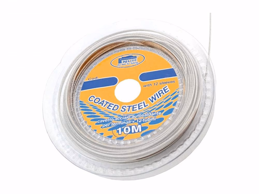 Lineaeffe Coated Steel Wire, self-welding steel cable for steel leaders with crimping tubes. Pack containing 12 crimping tubes and 10 m of heat-sealing steel wire for pike and saltwater leaders