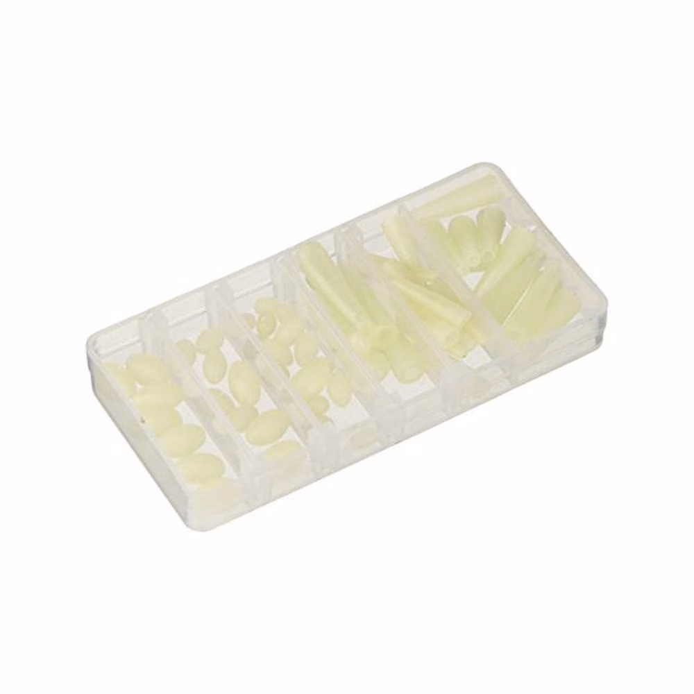 Kit of cones and fluorescent beads for surfcasting by Lineaeffe. This surfcasting fishing kit includes a practical transparent plastic box with different compartments that contain:
