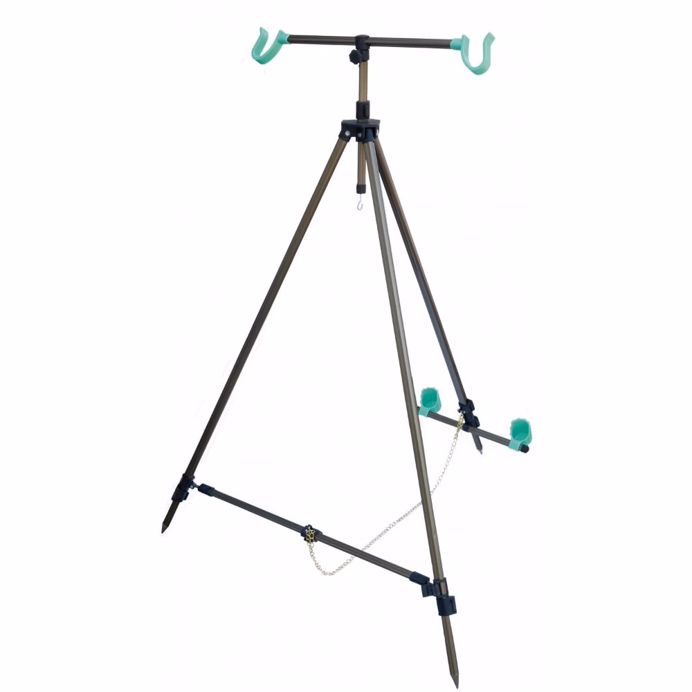 Lineaeffe Tripode Alluminio Telescopico Surf Casting. Comodo apoggiacanne da surf casting di colore nero, predisposto per l'appoggio di due canne da pesca. Questo tripode da surfcasting è telescopico, allungabile fino a 1,85 m ed ha un'inclinazione regolabile. Possiede piedini appuntiti che consentono di poterlo posizionare stabilmente su qualsiasi spiaggia o tipo di terreno.