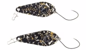 Lucky Craft PERE-SUPU uno spoon fatto per far focalizzare l'attenzione della trota su un obbiettivo limitato, quello vicino all'amo, ed avere un movimento discendente lento, volto ad imitare perfettamente il pellet. Questo ondulante, come tutti i Lucky Craft, viene realizzato con una esclusiva resina plastica, e produce un flasching ed una sonorità non paragonabili a quelli in metallo. Altamente consigliato in periodo di frega delle trote, con sali e scendi pigri, per pesca rasente al fondale, o per fare la differenza in gara con trote sospettose. Montato con amo Vanfook. Made in Japan.