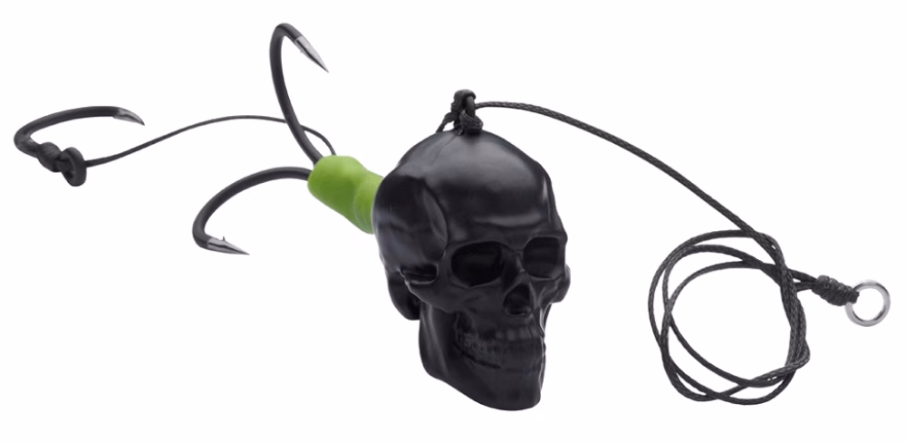 Il Madcat Skull Worm Jig è un rig estremamente efficace progettato specificamente per la pesca pelagica verticale al siluro. La sua struttura è costruita con Kevlar da 1 mm capace di resistere fino a 220 lb, garantendo una forza e un'affidabilità senza pari durante i combattimenti più estremi. La caratteristica distintiva è il rivestimento in gomma di testa e ami, che genera una super azione A-STATIC, fondamentale per non insospettire i grandi predatori sensibili ai campi elettrici dei metalli.
