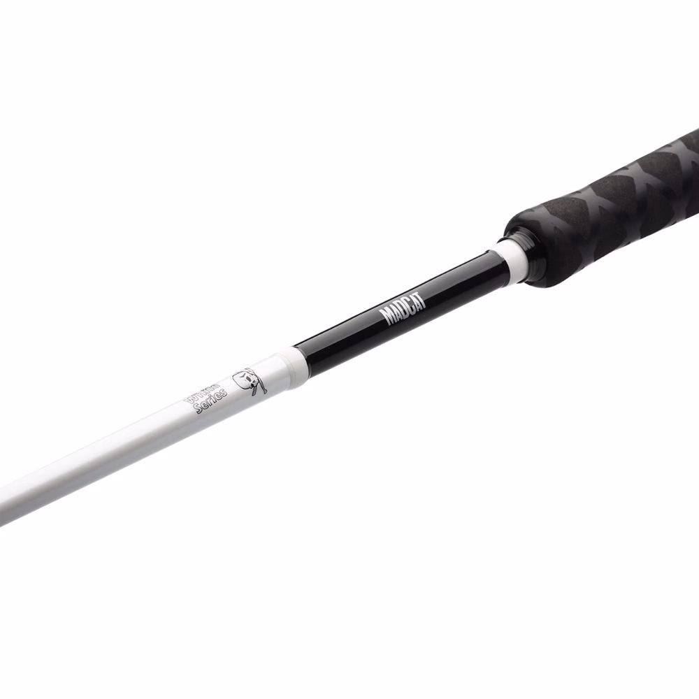 Canna da spinning per siluro realizzata con fusto a due sezioni in carbonio alto modulo ad alta resistenza per combattere anche con pesci over size. La canna da spinning Madcat White Spin è leggera e bilanciata per consentirvi di pescare per molte ore. Ha una lunghezza molto allround per la pesca a spinning, ed una azione polivalente che consente di pescare sia con esche rigide come crank bait o snodati, che con esche in silicone a testa piombata. Montata con anelli Seaguide a ponte doppio con frame rinforzato e pietra dura per pescare sia con monofilo che con treccia. l'impugnatura è in EVA ad alta densità (70 durometri). La placca porta mulinello è nylon + graphite con chiusura a vite per il massimo della sicurezza durante il combattimento con i siluri più grandi. La canna presenta un blank in nano-carbonio 30T.