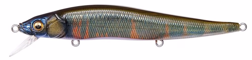 The Megabass Vision ONETEN lure is a famous Megabass suspending jerkbait which has an unparalleled action and huge flashes, but also allows it to cast like a bullet, far outpacing conventional jerk baits. This deadly package is finished off with three Megabass original sticky-sharp KATSUAGE OUT-BARB treble hooks, designed to increase hook-setting percentages when power-bait fishing. Crafted to generate results with a steady retrieve, traditional "jerk, jerk, pause," or trolling, the ONETEN responds to rod actions with unparalleled, life-like action.