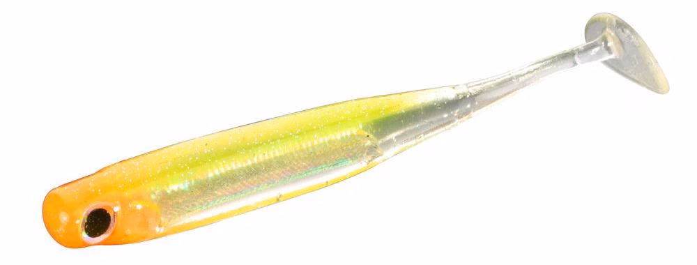 Mikado Furyo, ovvero una soft-swimbait con corpo a foma di "shad" e coda piatta (T-TAIL). La sua caratteristica principale è quella di avere un copo molto piatto, con inserita all'interno una lamina holografica che aumenta notevolmente l'effetto riflettente dell'esca, riproducendo fedelmente delle vere squame. Esca molto versatile, che si presta sia allo spinning in acque interne (black bass, trota, persico reale, luciperca, aspio, cavedano, luccio) sia allo spinning in mare (rock fishing, barracuda e spigola etc etc). Prodotta in differenti misure, tutte dotate dotate di occhio 3D, la Mikado Furyo è una softbait idonea ad essere innescata sia con jighead classica, che a drop shot. Aromatizzata con aroma al gambero.