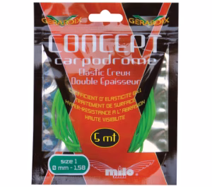 Elastico Milo Concept Carpodrome. Appositamente progettato per la pesca alla carpa in lago, questo elastico cavo a doppio strato rivestito in silicone ha un fattore di allungamento di 1:8 e eccellenti proprietà di recupero. Offre un'eccezionale resistenza all'abrasione ed è altamente visibile, rendendo facile seguire ogni movimento del pesce allamato. L'elastico Milo Concept Carpodrome, appartenente alla linea di prodotti Milo Gerardix, vi permetterà di gestire con disinvoltura le situazioni più estreme, anche i pesci più combattivi. Ciò che sembrava impossibile ora è diventato realtà con gli elastici Concept Carpodrome. Venduto in confezione con cerniera ermetica per non alterare le proprietà elastiche.