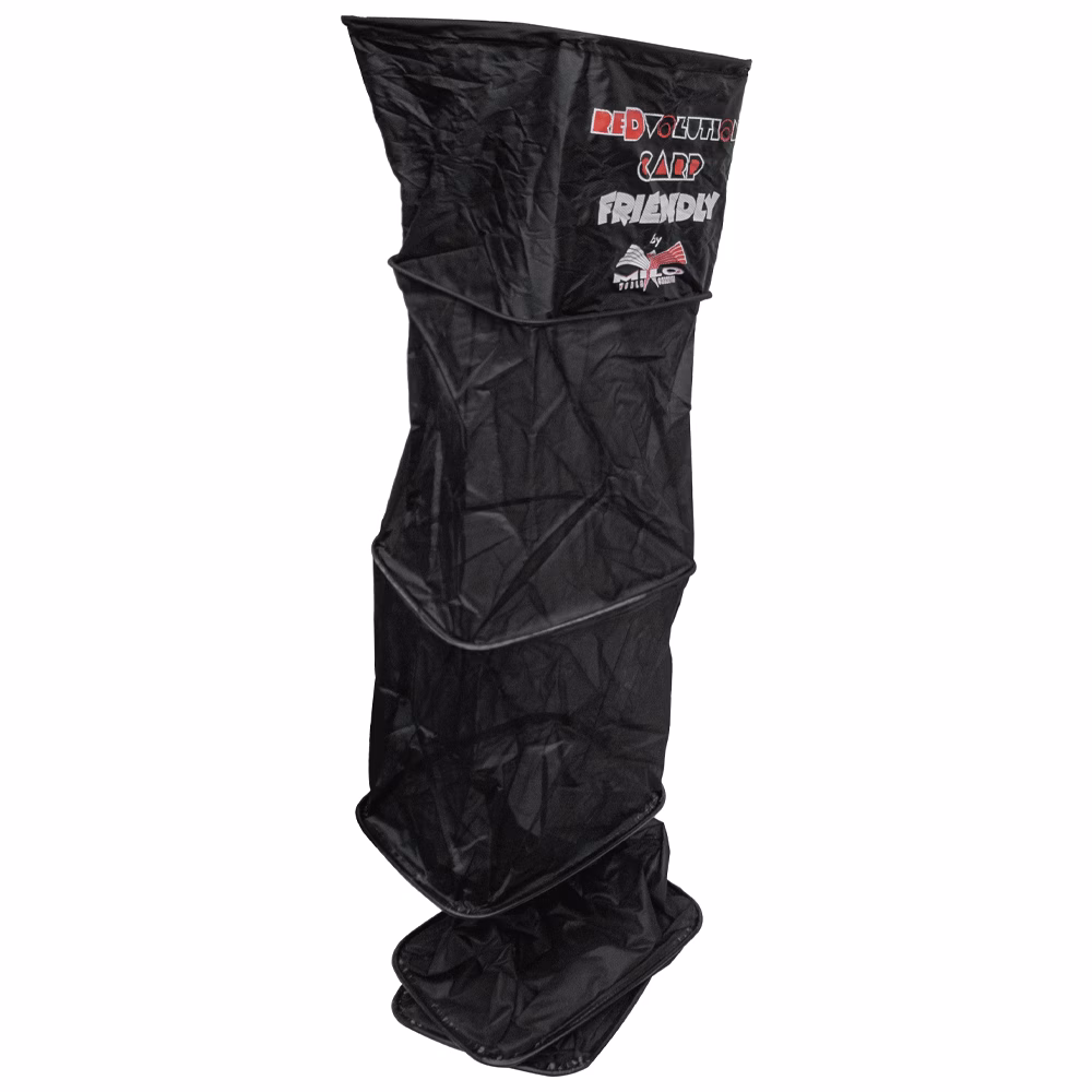 Milo Keep Net Redvolution Carp Friendly. Nuovo modello di nassa realizzata con una particolare ed innovativa maglia di tessuto extra fine, resistente ed assolutamente antistrappo, che rende praticamente impossibile, ai pesci che presentano dei rostri sulle pinne, di rimanere attaccati ai bordi laterali. Il posizionamento della boccola di attacco al paniere, situata sul lato corto dell’imboccatura rettangolare, favorisce l’inserimento delle catture nella nassa direttamente con la testa del guadino. Dotata di attacco, orientabile a 180°, con filettatura universale e di due moschettoni per la chiusura che ne riducono l’ingombro è l’ideale per le sessioni di pesca caratterizzate da grandi quantitativi di pesci gatto americani.
