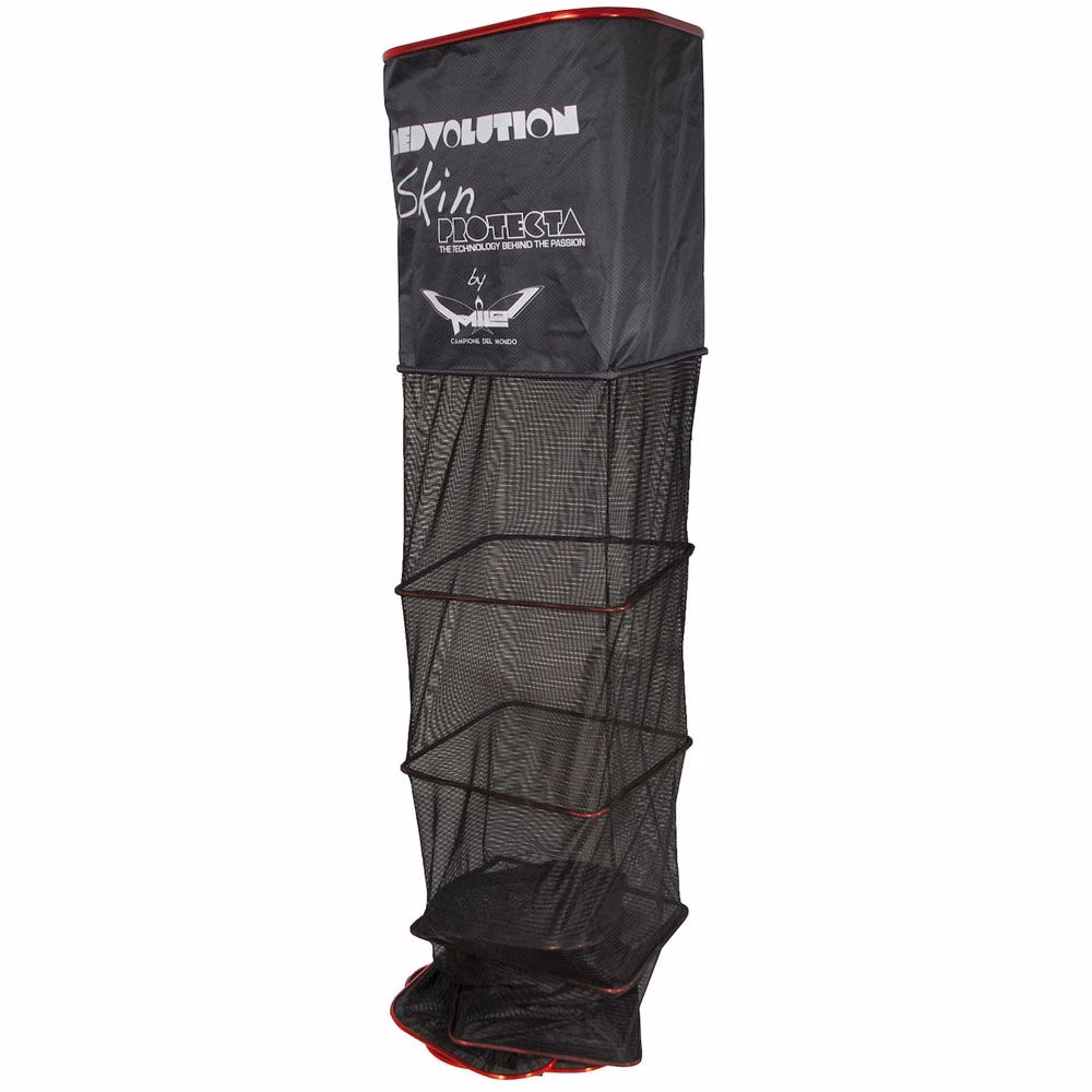 Milo KeepNet Redvolution Skin Protect nassa per la pesca al colpo e feeder, rivoluzionaria per materiali e concezione è dotata di anelli in alluminio anodizzato. Realizzata con un particolare tessuto morbido che protegge la pelle del pesce, presenta un restringimento in corrispondenza degli ultimi due anelli provvisti di maniglie per un migliore svuotamento in occasione delle pesate. Dispone di un pulsante per la comoda regolazione della sua inclinazione.