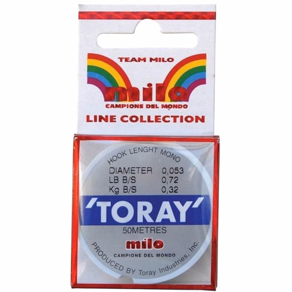 Il filo Milo Toray Hook Lenght è un filo giapponese specifico per terminali e lenze da gara per la pesca al colpo, testato e sviluppato per ottenere carichi di rottura senza pari. I diametri sono rigorosamente testati e garantiti. Le bobine di questi fili da pesca Milo sono protette da uno speciale astuccio anti UV. Essendo un prodotto per terminali è disponibile solo in bobine da 50 metri. Utilizzato anche come terminale per il trout area game.
