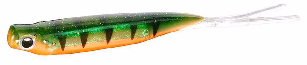 Nomura Double Tail. Questa imitazione di pesce foraggio, è realizzata in modo assolutamente impeccabile. La coda a V, oscilla ad ogni movimento della canna, ed il corpo rettangolare è migliorato dall'inserimento di una lamina interna olografica interna, emette flash continui esattamente come quelli delle squame di una piccola preda. Il Double Tail Mini è prodotto da Nomura ed è consigliato per la trota, persico reale, black bass e lucioperca a seconda delle misure. Gli inneschi consigliati sono texas rig (con bullet o split shot), jig head e ovviamente drop shot. Realizzato in moltissimi seducenti colori per ogni situazione di pesca, tutti con occhio 3d!