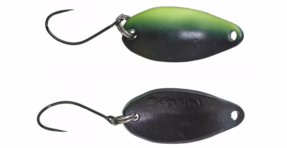 Gunki Slide area game spoon, cucchiaini ondulanti da trota della nuova serie Gunki Reinbò per la pesca a spinning no kill in laghetto, decisamente economici, ma dalle assolute performances in termini di qualità della colorazione, distanza di lancio e dinamicità azione. Questi ondulanti hanno ami singoli senza ardiglione.