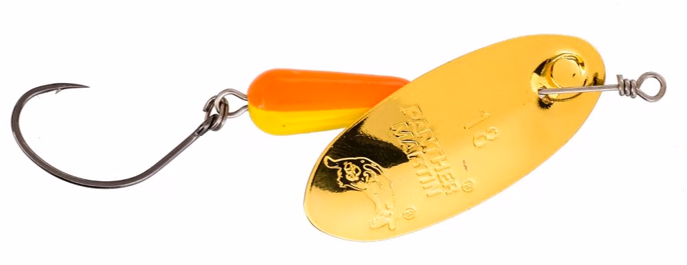 Nuovi rotanti Panther Martin MARMORATA. Disegnati per la pesca della regina dei predatori italiani, con tutti i dettagli necessari per renderli i rotanti di riferimento per questa specie. Montato con ami singoli BKK, doppia perlina monoblocco per una rotazione perfetta a tutte le velocità, split rings per veloce cambio amo. Prodotti in due versioni per vincere le correnti e le profondità in un vasto scenario di ambienti, con pala 18 (peso 24 gr) e pala 20 (peso 30 gr) e in due schemi colore super collaudati. Questi nuovi cucchiaini rotanti Martin, rappresentano il meglio mai prodotto in termini di esche metalliche, per la pesca della trota marmorata.