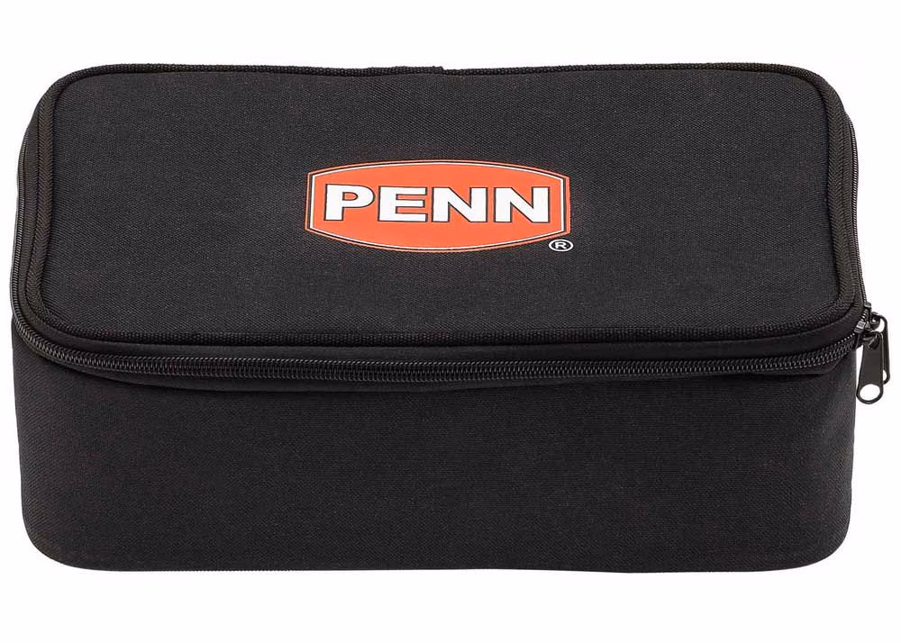 Penn Reel And 2 Spare Spool Case. La custodia per mulinelli da spinning Penn è realizzata in tessuto 600D extra resistente con rivestimento in PVC per una maggiore durata e protezione. Questo porta-mulinelli è appositamente progettato per proteggere e trasportare il mulinello e le bobine di ricambio da eventuali danni causati da rocce, sabbia o sporco. Si adatta perfettamente a mulinelli fino alla taglia 8000 e ci sono due spazi extra che trattengono e proteggono le bobine di ricambio compreso il filo. Inoltre, la custodia del mulinello ha una maniglia facile da trasportare e doppie cerniere per una facile apertura.