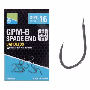 Preston GPM-B Spade End Barbless sono ami Preston con paletta e senza ardiglione. Preston GPM-B Spade End Barbless è un amo ideale per tute le tipologie di pesci e che è perfetto per una vasta gamma di pesca in acque commerciali. I GPM-B Spade End Barbless sono ideali per esche come boilies, band'um, carne, mais, caster, vermi, praticamente qualsiasi esca che si dovrebbe usare in una pesca commerciale.