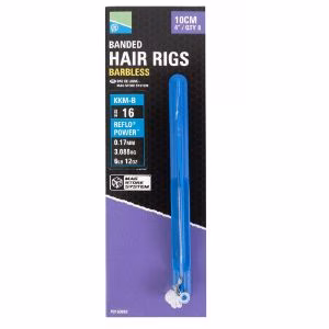 Preston Innovations KKM-B Banded Hair Rigs Barbless. I terminali pronti KKM-B Banded Hair Rigs Barbless sono ami legati completi di elastico. I sistemi Mag Store Rigs portano il design al livello successivo. Sono costruiti con materiali di altissima qualità e legati a specifiche precise per creare rig adatti a tutti i pescatori. Il rig stick completamente caricato può essere prelevato direttamente dalla confezione e inserito nel Mag Store System Box di dimensioni corrette. Ogni confezione contiene 8 rig che sono sistemati sul supporto, le dimensioni dell'amo e il diametro della linea e il carico di rottura possono essere facilmente identificati con l'adesivo allegato. Gli ami KKM-B sono utilizzati su ogni rig, legati con la collaudata linea Reflo Power. Un Bait Band completano il rig, rendendolo adatto ad una moltitudine di esche.