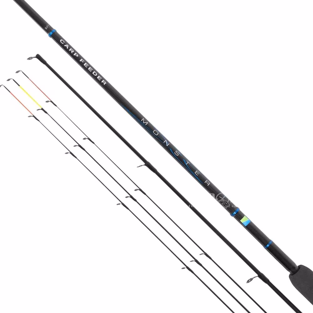 MONSTER X 10 ft. CARP FEEDER: è una canna molto versatile, perfetta per la pesca in acque commerciali a distanze fino a 30-35 m. Come per tutti i modelli della gamma Monster X, anche la 10 ft è caratterizzata da un'azione studiata meticolosamente per affrontare le più disparate situazioni, dalla pesca invernale a quella estiva potendo sempre disporre di una parte centrale progressiva e di una parte di potenza concentrata nella metà inferiore della canna per favorire al meglio l'azione di lancio. Distribuita con 3 vette in carbonio da 1 oz, 1.5 oz, 2 oz. Casting 40 g – line rating 4-8 lb.