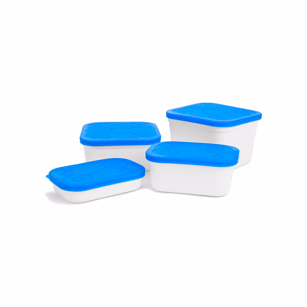 Preston Innovations White Bait Tube. The white and blue color scheme makes these bait tubs look extremely smart on the bank but with added benefits of helping to keep your bait cool in hot conditions and also allowing you easily pick out hookbaits against the light background. The White Bait Tubs have internal measurements to allow you to accurately measure your bait.