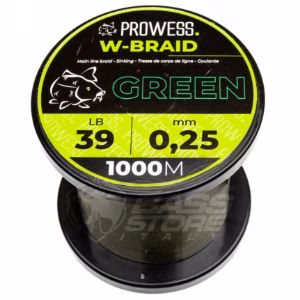 Filo trecciato da carpfishing affondante Prowless in bobina da 1000 metri. Il filo PE Prowess W-Braid ha una composizione a base di fibre di polietilene (PE) ad alto modulo le conferisce la flessibilità e la resistenza all'abrasione necessarie a renderla un'eccellente filo da carp-fishing da mulinello. Sicuramente un filo da pesca alla carpa superbo e molto economico.