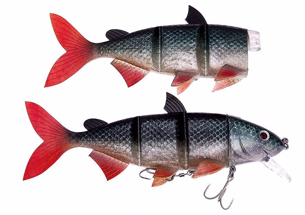 Quantum Junker, swimbait da luccio con testa in plastica rigida con paletta e coda in gomma elastica, che produce un movimento molto adescante su recuperi lenti. Slow sinking. Molto ben armata con due ancorette affilate chimicamente ad alta resistenza. Fornita di coda in ricambio.