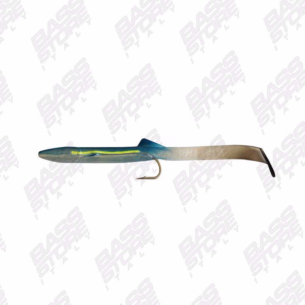 Ragot Raglou. Famose esche in gomma Ragot Raglou nei nuovi colori, già armate con un amo zincato con occhiello disponibili in varie lunghezze, celebri per la pesca a spinning in mare.. Si tratta dell''imitazione del cicerello (Gymnammodytes cicerelus) conosciuto anche come anguilla della sabbia; un pesce caratteristico del mediterraneo occidentale presente in molte spiagge che vive insabbiato di giorno e che entra in attività di notte. E' predato dalle spigole e dalla maggior parte dei predatori del sottocosta e per questo motivo è un esca molto usata ed amata da tutti gli angler. La versatilità dell'esca consente di sbizzarrisi con molti tipi di innesco diverso così c'è chi usa sostituirne l'amo con una amo piombato. Noi consigliamo l'uso con bullet weights (pesi a proiettile) o innesco a "carolina jig" (peso a proiettile + girella + terminale). Tre pezzi per confezione.