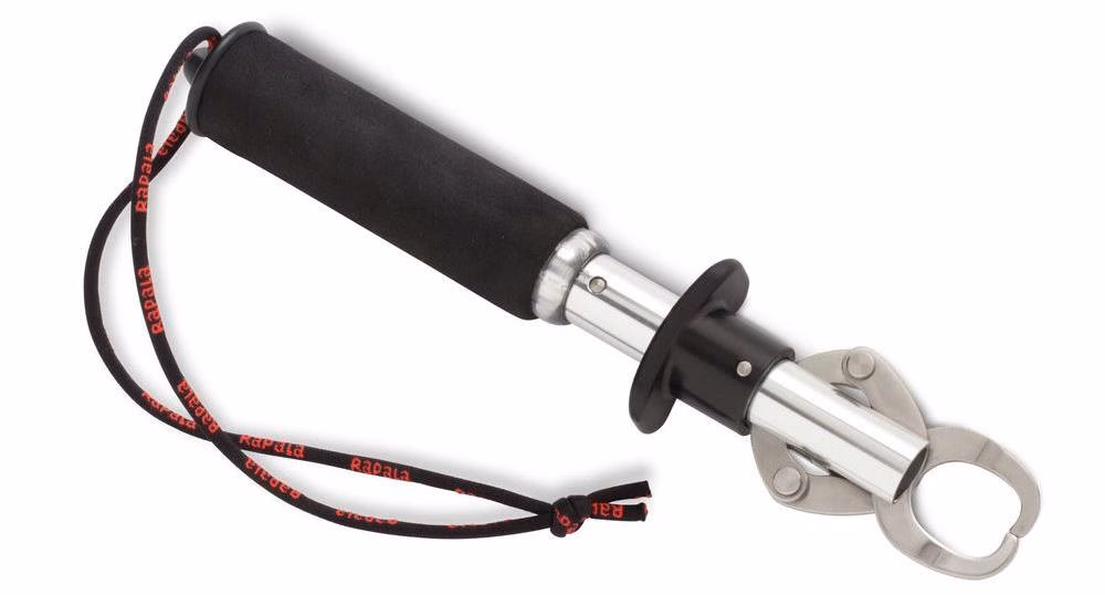 Rapala 25 kg Mechanical Fish Gripper. Grip originale blocca pesce Rapala con bilancia fino a 25 kg inclusa. Resistente alla corrosione, è ideale nella pesca a spinning in mare. Presa comoda, morbida, antiscivolo. Con cordino anti caduta. Non permette al pesce di ferire il pescatore durante la rimozione dell'amo.