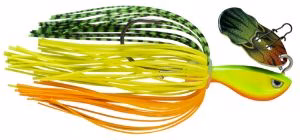 The Rap-V Pike Bladed Jig combines elements from multiple lures and blends them into a full-sensory attack! Fitted with a welded silicone skirt and a uniquely printed and snag-reducing blade, this lure swims with irresistible flash and vibration. The versatile and easy-to-fish Rap-V Pike Bladed Jig is effective in any type of situation. The lure’s construction allows for using a trailer for increased volume. Target: black bass, perch, pike.