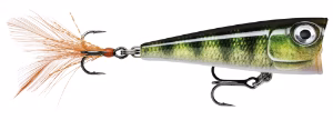 Rapala Ultra Light Pop. Ecco una piccolo popper di superficie che si muove e spruzza alla perfezione. La sua ampia bocca concava è progettata per generare bolle d'aria ad ogni "Twitch". Grazie alla sua sfera interna rumorosa e molto attraente, questo piccolo Popper non passa mai inosservato ai persici, black bass, aspi e cavedani.