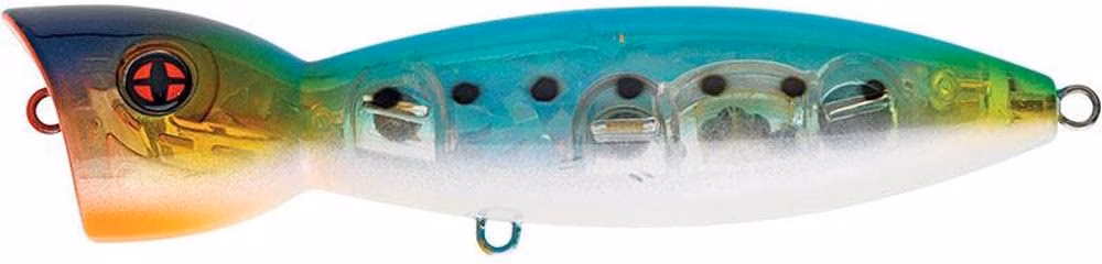 Sakura Pulsion TR. Il popper Sakura Pulsion TR è un popper da mare per le pesca a spinning media e pesante. La forma molto particolare del Pulsion TR, gli dà un nuoto incomparabile quando è jerkato vigorosamente, producendo vortici d'acqua, scarti laterali e flash luminosi. Il suo successo fulgorante non è certo estraneo al fatto che il suo artefice di fama non è altri che il signor Ange PORTEUX, vera e propria leggenda vivente della pesca in mare, nato nel 1914 e sempre attivo sulle coste della sua Bretagna cara ha collaborato in diverse occasioni con la società SERT. la forma molto particolare dell'Impulse TR, con questa strozzatura a livello del "collo", gli conferisce un nuoto incomparabile quando viene maneggiato con vigore. L'alleanza tra gli spruzzi d'acqua e questi movimenti ondulatori ne fanno un'arma spaventosa. Questo popper Sakura ha un armatura passante (full wire) e colori che lo renderanno più resistente ed adescante per la pesca in mare ai grandi predatori ai quali è destinato: leccia, pesce serra, tunnidi, predatori tropicali. Estremamente lanciabile per il rapporto peso/dimensioni, monta ancoretta ad alta resistenza giapponesi rustproof. Armato con ancorette da mare 3x. Galleggiante.