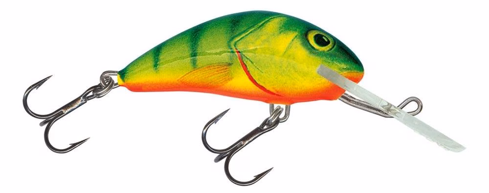 Salmo Hornet. Il minnow ibrido Salmo Hornet, by Salmo lures Poland, è un "peanut crankbait" da light game dal nuoto vivace, di provata efficacia nella pesca della trota, del persico reale, dell'aspio e del cavedano, per la sua innata capacita' di nuotare bene anche con corrente sostenuta. Eccellente lanciabilità ed assetto di nuoto perfetto. Ottimo anche per una traina leggera.