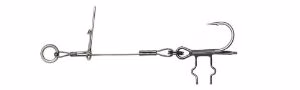 Perfect stingers, for corkscrew rigs or the Punch Rig. Wide gape T-trebles, with a unique Pinching spike holder. Carbon49 Stainless Steel wire 0.70mm 23kg. 2 pcs per pack