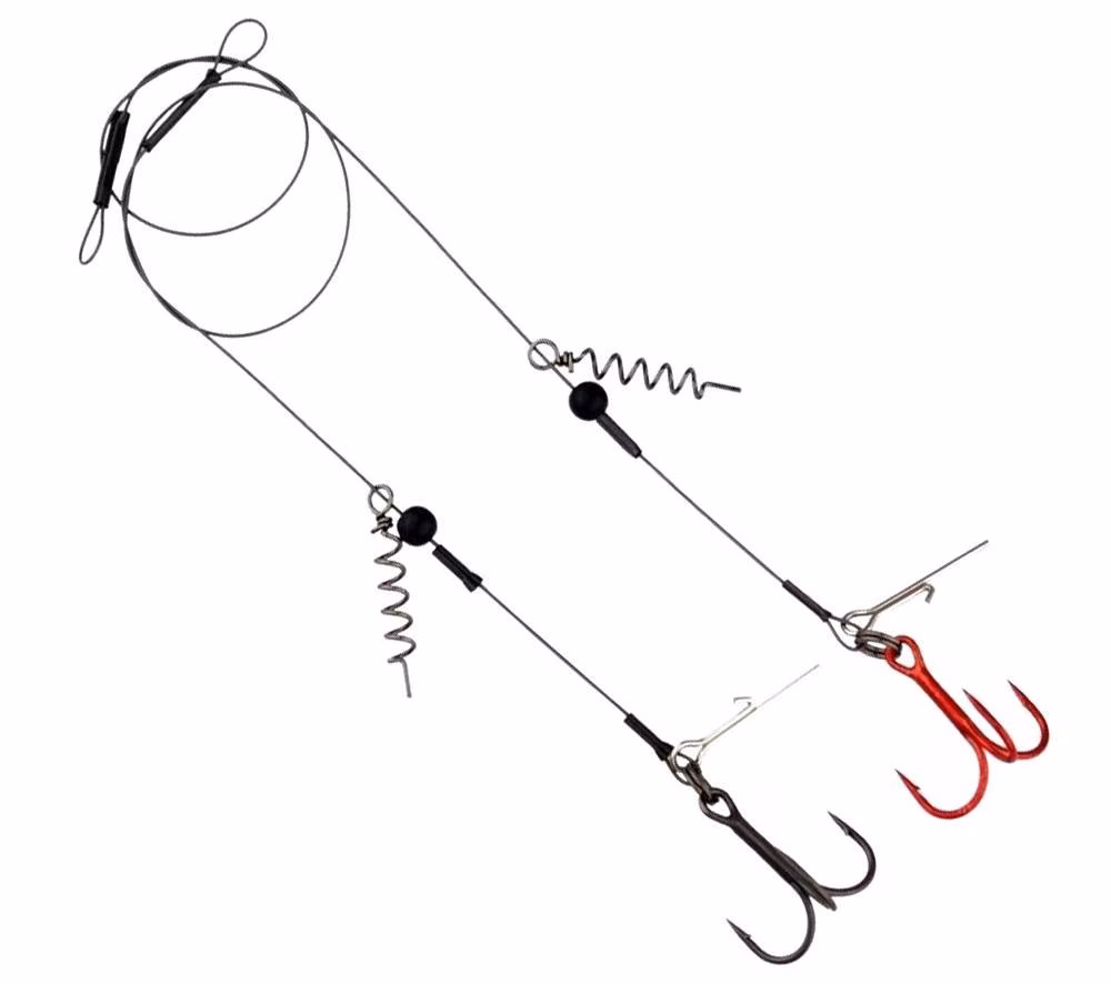 Savage Gear Line Thru Cork Screw Rig. Rig specifici per innescare le esche della serie LINE THRU SAVAGE GEAR (come LINE THRU perch, LINE THRU trout e LINE THRU roach) con passaggio del filo all'interno del corpo morbido di queste esche. Questo sistema di innesco Savage Gear consente all'esca morbida di staccarsi e spostarsi lungo il filo, al momento dell'abboccata del pesce, garantendo la cattura quando si pesca con esche di grande dimensione!