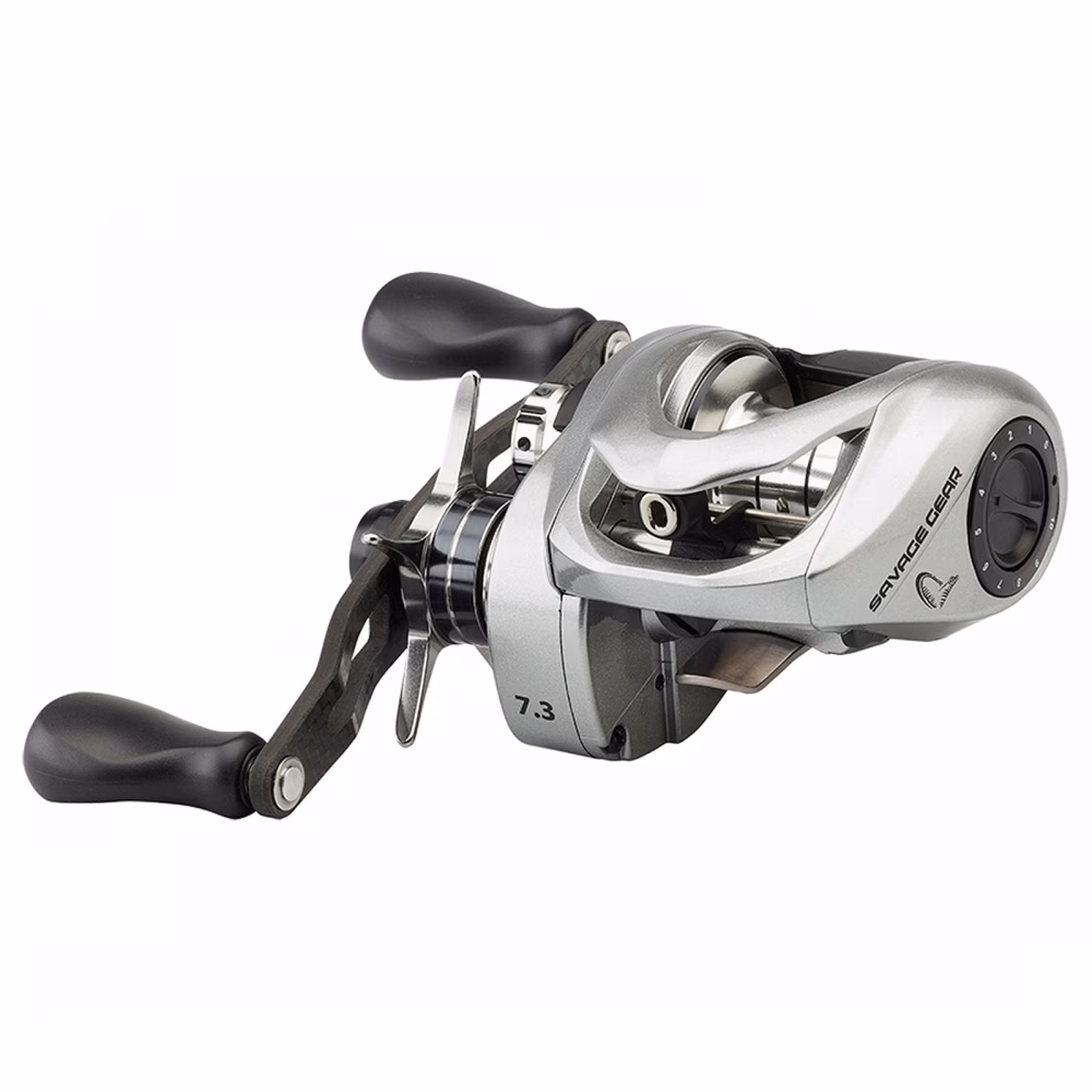 Representing the very best of Savage Gear technology and innovation, the flagship SG10 baitcasting reel is loaded with smart ideas to help you achieve your angling goals. Besides the obvious impressive features, such as 10+1 stainless steel ball bearings, a machined gear, DuraGrease and a super strong and rigid aluminium body and side plate, the real standout highlight is the external centrifugal brake. This brake results in easier casting and playing fish, increased casting distance, a reduction in knots and tangles and less trouble when casting in strong crosswinds. This reel series is also versatile – capably of casting lures from five grams and upwards, making it ideal for black bass and pike with medium lures and also zander and perch with smaller, lighter lures. Once you try the SG10, you’ll never look back.
