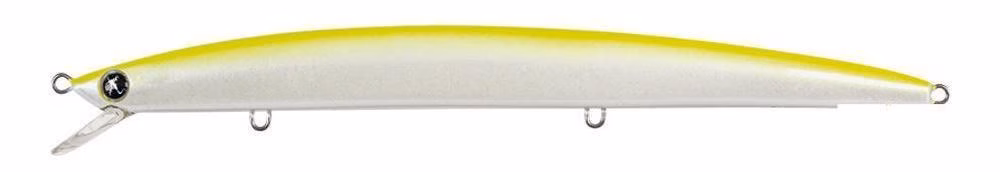 Seaspin Mommotti 140. Il Mommotti 140 SS è il long jerk minnow intermedio tra le esche Seaspin, eccezionale oltre che per il lungo lancio, anche per l'ottima tenuta di corrente e il movimento in acqua. Un esca molto polivalente rivolta soprattutto a spigole, barracuda, serra ma anche a molti altri predatori. Risponde molto bene alle jerkate con ampie sbandate laterali ma anche in fase di recupero regolare è estremamente efficace, sia con ecuperi veloci che lenti. Progettato per lavorare nella fascia d'acqua dei 50-70cm e per essere utilizzato da postazioni basse o comunque non troppo alte rispetto al livello del mare. Il Seaspin Mommotti 140 ha un affondamento slow sinking ed è consigliato anche per le acque calme. Utilizzabile con ottimi risultati sia nella pesca a spinning da riva che dalla barca.