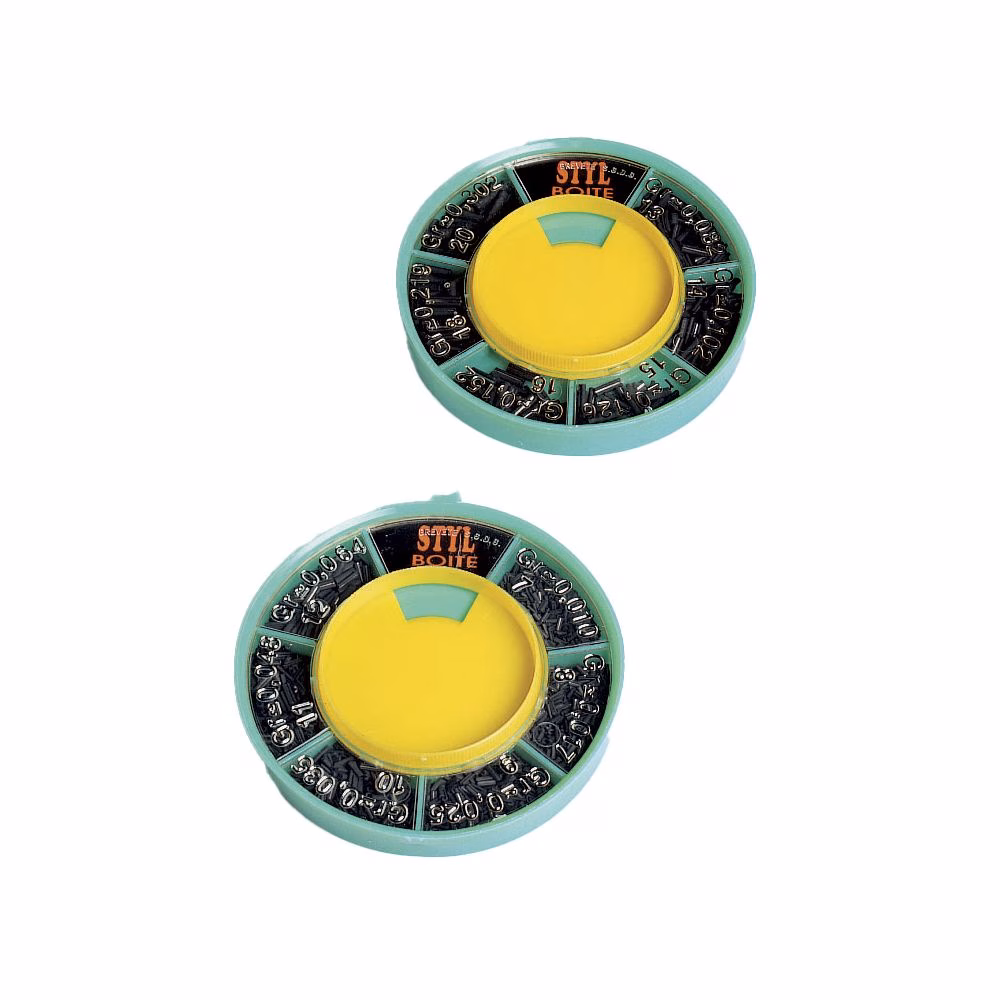 BOITE DISTRIBUTRICE STYL STANDARD SENSAS, STYL-STANDARDS Très pratique au bord de l'eau. La cuvette rotative centrale permet de se saisir très facilement des plombs désirés.