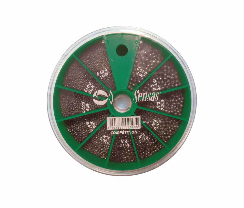 mascott Piombo Competition Sensas, Una scatola completa con un assortimento di pallini di tutte le dimensioni. Compatto, questa è la scatola ideale che devi avere (n. 1-11).