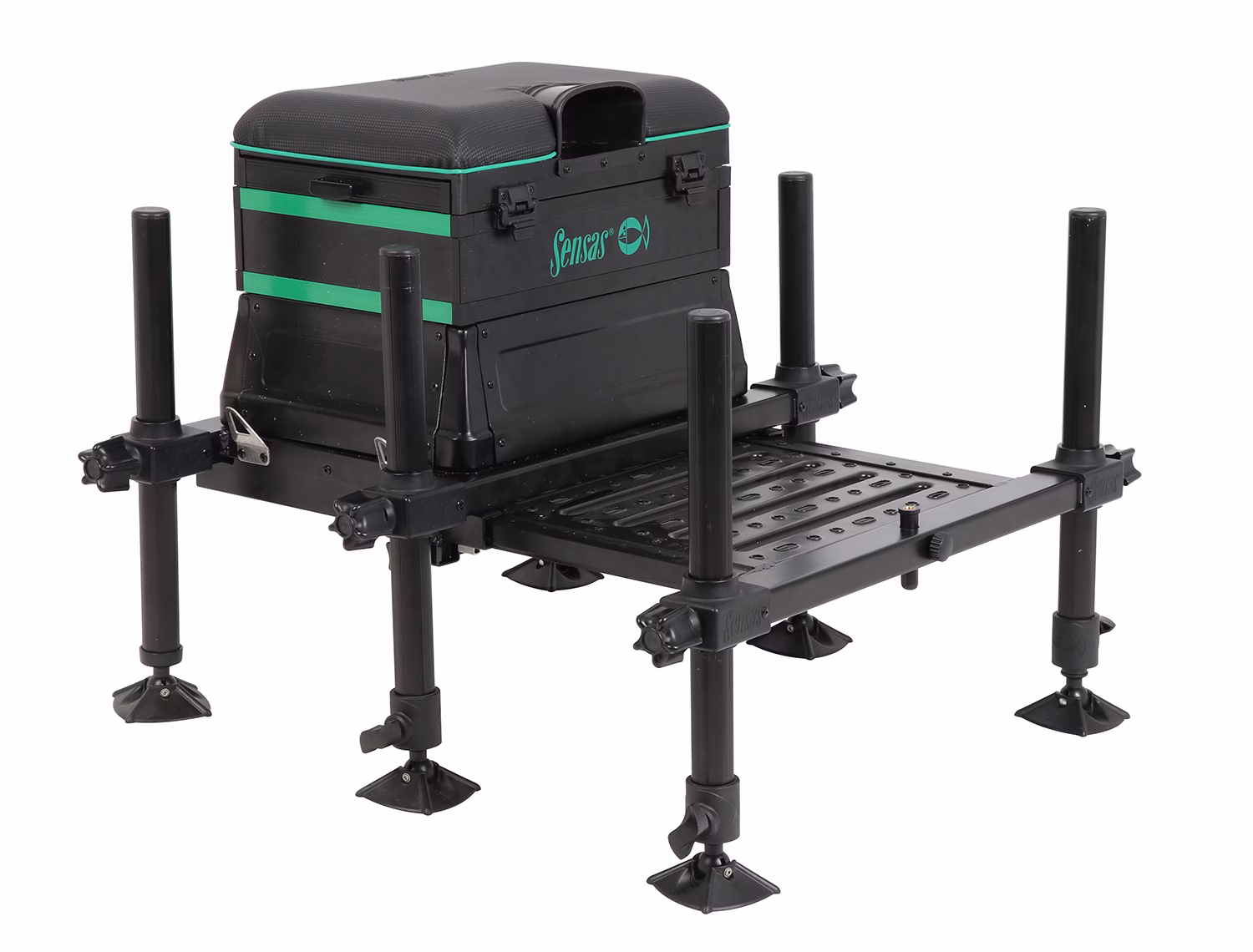 Il nuovo panchetto Panier Jumbo 2900 di Sensas è un paniere per match fishing di alta qualità per il pescatore amatore evoluto e per il garista. Ha una struttura leggera in alluminio e una seduta confortevole. Le due gambe fisse e le quattro gambe regolabili telescopicamente rendono la seat box stabile su qualsiasi superficie. Inoltre, la seat box è dotata di vani per riporre gli accessori e di un supporto per la nassa. È dotato di un ampio supporto per le canne da pesca, facile da posizionare!