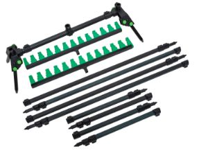 SUPPORT KIT SUPER LUXE UNIVERSEL Support kit luxe, pouvant s'adapter à n'importe quelle situation au bord de l'eau ! Vous pourrez l'utiliser de manière verticale ou horizontale. Livré avec 2 supports kits de 12 loges, ainsi que 8 pieds, pour pouvoir s'adapter à n'importe quel type de berge. Idéal pour la championnats ou grandes compétitions!