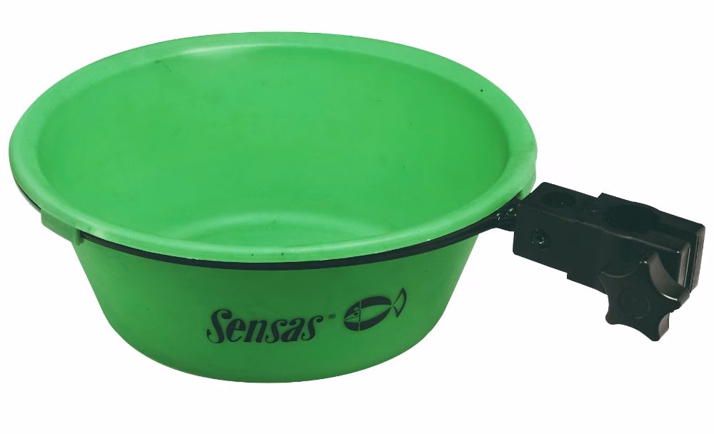 Sensas Supporto + Bacinella Tonda da paniere. Questo set è essenziale per conservare l'acqua, la pastura o altro a portata di mano. Adatto a panchetti con gambe diametro 25 e 36 mm.
