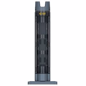 Questo supporto si aggancia alla scatola tramite un innesto rapido estremamente comodo e funzionale, che permette di spostarlo rapidamente da una posizione all'altra a seconda delle necessità del pescatore. Il Sert SRT-3077 è completamente regolabile in altezza, caratteristica che gli consente di accogliere qualsiasi tipo di canna, dalle ultra-light da trout area a modelli più ingombranti.