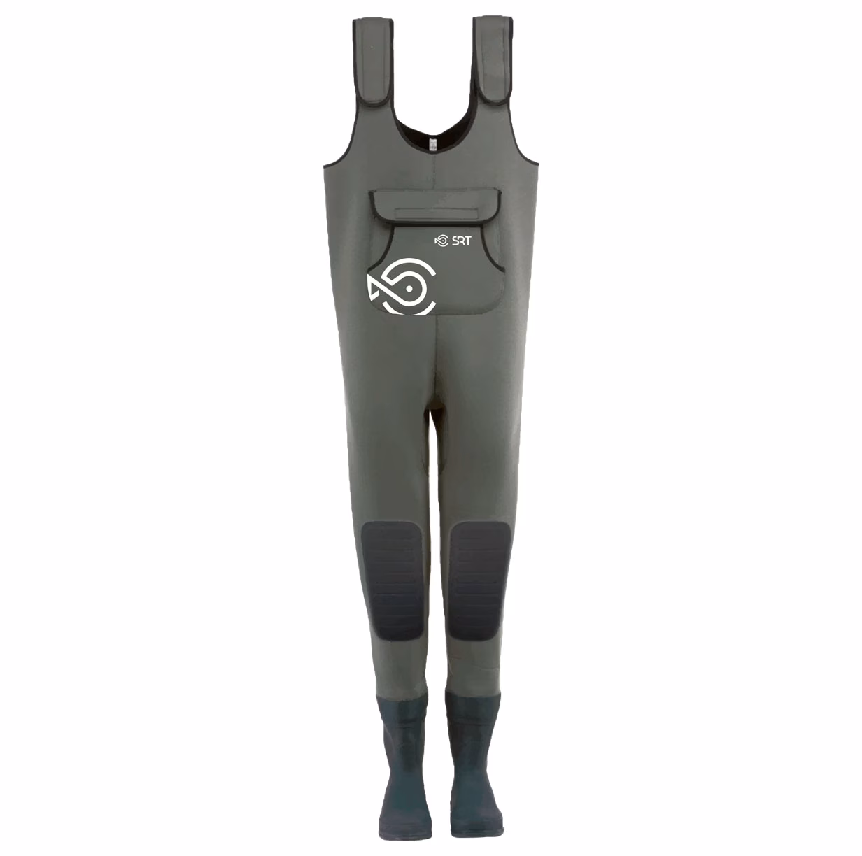 Waders in neoprene da 4 mm SERT con stivale incorporato con suola "a carro armato" adatto per entrare nell’acqua senza scivolare, senza bagnarsi e non avere freddo durante le battute di pesca. Questi waders da pesca in neoprene sono dotati di due tasche esterne all’altezza del petto.