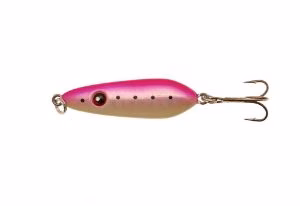 Lo Steel Dog di T-Fishing Extreme è un metal jig che ha la caratteristica di avere una smussatura interna molto pronunciata su un lato. Questo disegno gli conferisce una azione di nuoto irregolare, ma estremamente lenta durante le pause, con ondeggiamenti seducenti. A potenziare l'effetto visivo, questa depressione interna presenta una verniciatura holografica, che aumenta totalmente il flashing. Si presa sia ad essere usato come casting jig da costa che ad essere lanciato sulle mangianze. Montato con split rings di qualità ed ancorette affilate chimicamente VMC. Disponibile in due diverse misure.