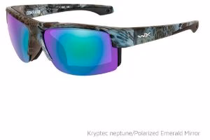 The Wiley X Filter 8™ Polarized Emerald Mirror (Amber) polycarbonate lenses is an amber tinted lens under an emerald green multi-coat mirror surface that’s specially designed to amplify color contrast and deliver high visual definition. Distinct colors and crisp acuity in all light conditions for superior vision performance. The WX polarized lenses provides 100% UV protection and is coated with hydrophobic and anti-reflective coating protected by the T-Shell™ scratch resistant layers.