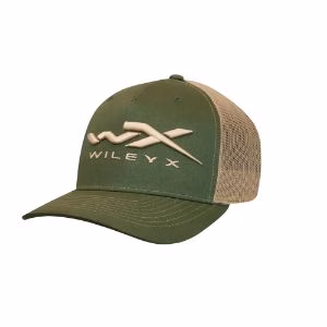 The Wiley X Snapback Cap is a stylish and adjustable one-size-fits-most cap. It features cotton twill front panels and a visor with a nylon mesh back in a Green/Beige in color scheme.